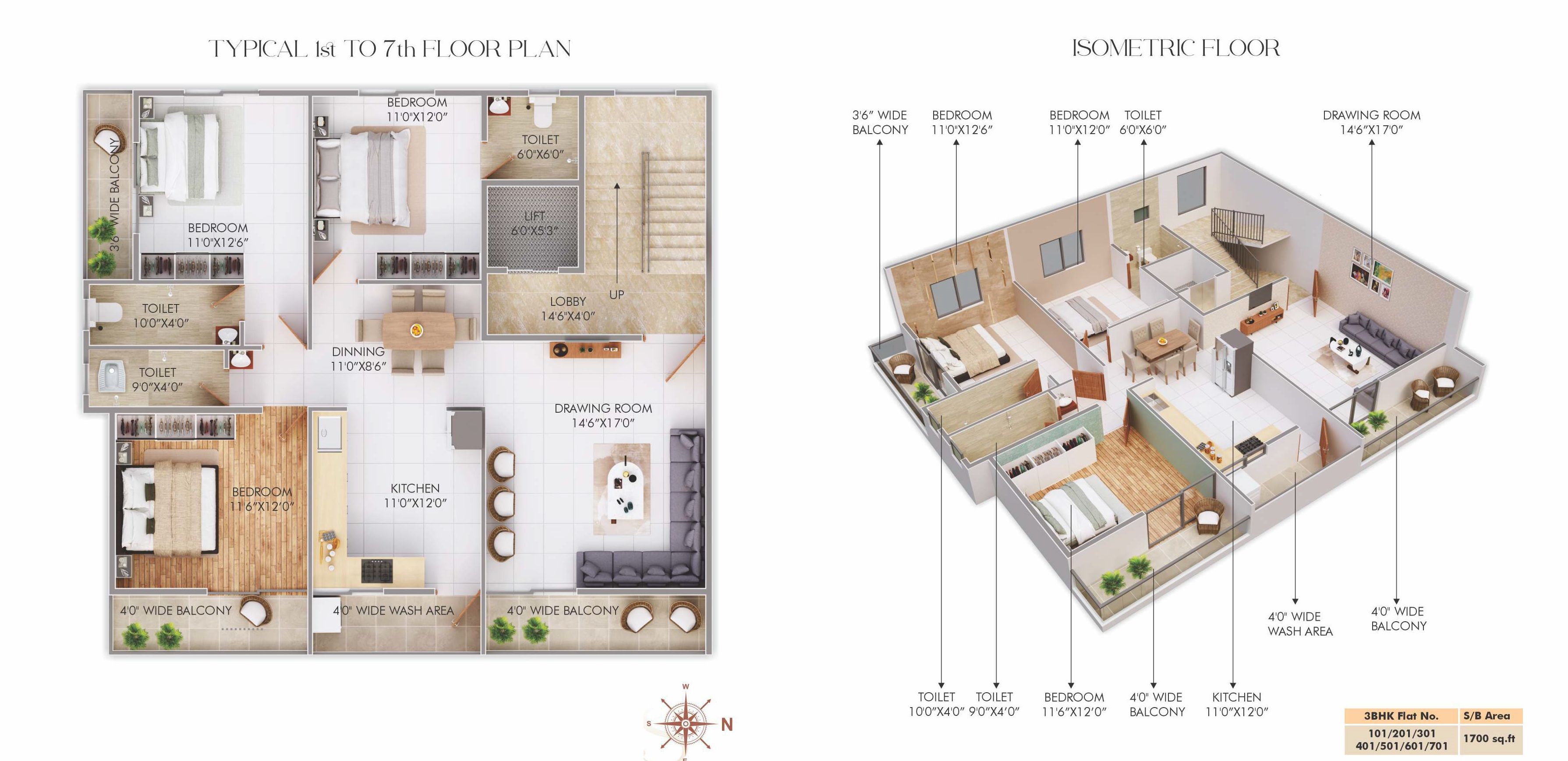 | Type 3 BHK Flats / Apartments | Super Area 1700 Sq.ft. | Price Call for Price | Floor Plan